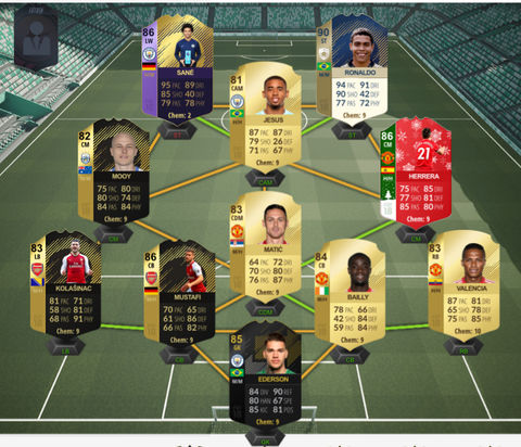Ronaldosat választanám, annyi változtatással, hogy 4-3-2-1-ből indulnék és Jesus helyett Williant raknám be, így meglenne mindenkin a full chem és CAM-ban se Jesus lenne. Szerintem ő oda kevés, főleg a sima lapja, viszont Willian nagyon jól irányítana.