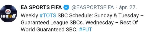 Mit gondoltok van arra esély, hogy holnap ha lejár a tots sbc, akkor utána rögtön berakják újból, csak eladható lappal? Mondjuk kellene bele két db tots, és 83-as rating vagy ilyesmi..és ez is egyszeri alkalommal?