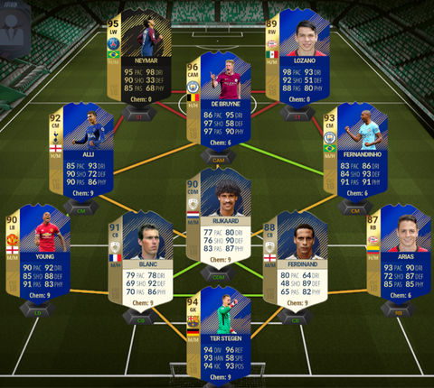 Jelenleg ilyen a csapat. Bármilyen változtatás amit a jövőben eszközölhetnék? Ha mondjuk ikon akkor végső esetben akár Crespot is felhasználhatom, de az fájdalmas lenne... A védelmet okénak érzem, ott max egy ikon segítene. Esetleg egy "jobb" De Gea? 100k-m van most, de hátha jön még valami jó húzás.