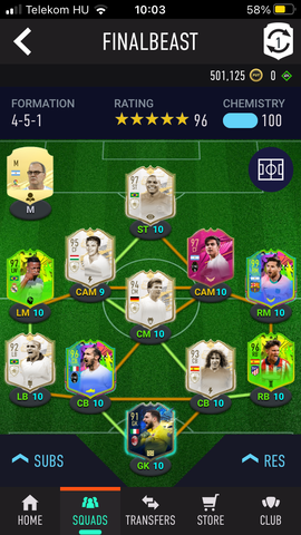 Kb. 70-80 upgradet toltam le (85+), mindenki jott, kiveve Mbappe es Neymar, de meg gold SE! Kiraktam Cruyff-ot, 93+bol Garrincha … megcsinaltam CR-t is. Delutan vegre teszteltem a csapatot, 5-bol 5 zako!