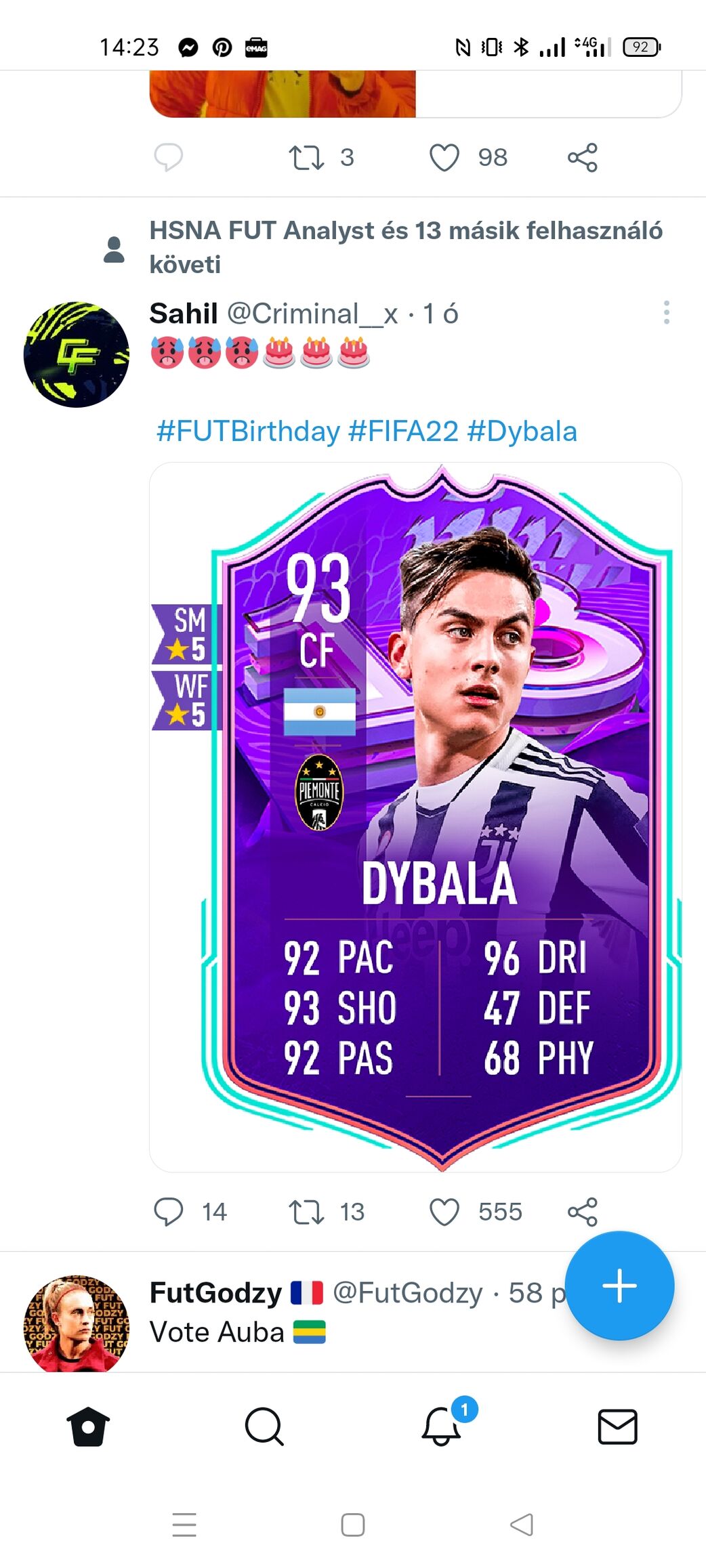 Nem egyszerű neked.Digestive: Ha jön Dybala akkor bajban leszek, mert neki a sima gold lapja is iszonyat jó volt. És muszáj leszek megszerezni, majd valahogy beépíteni a csapatba.