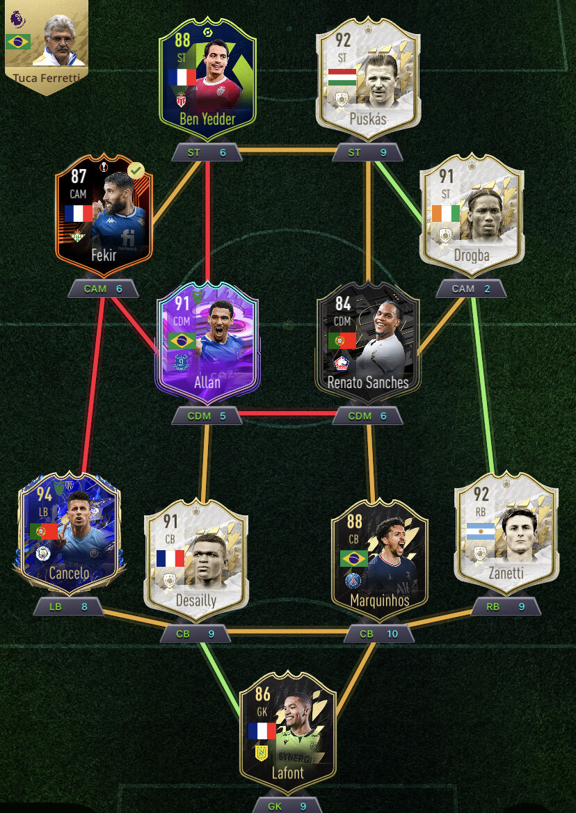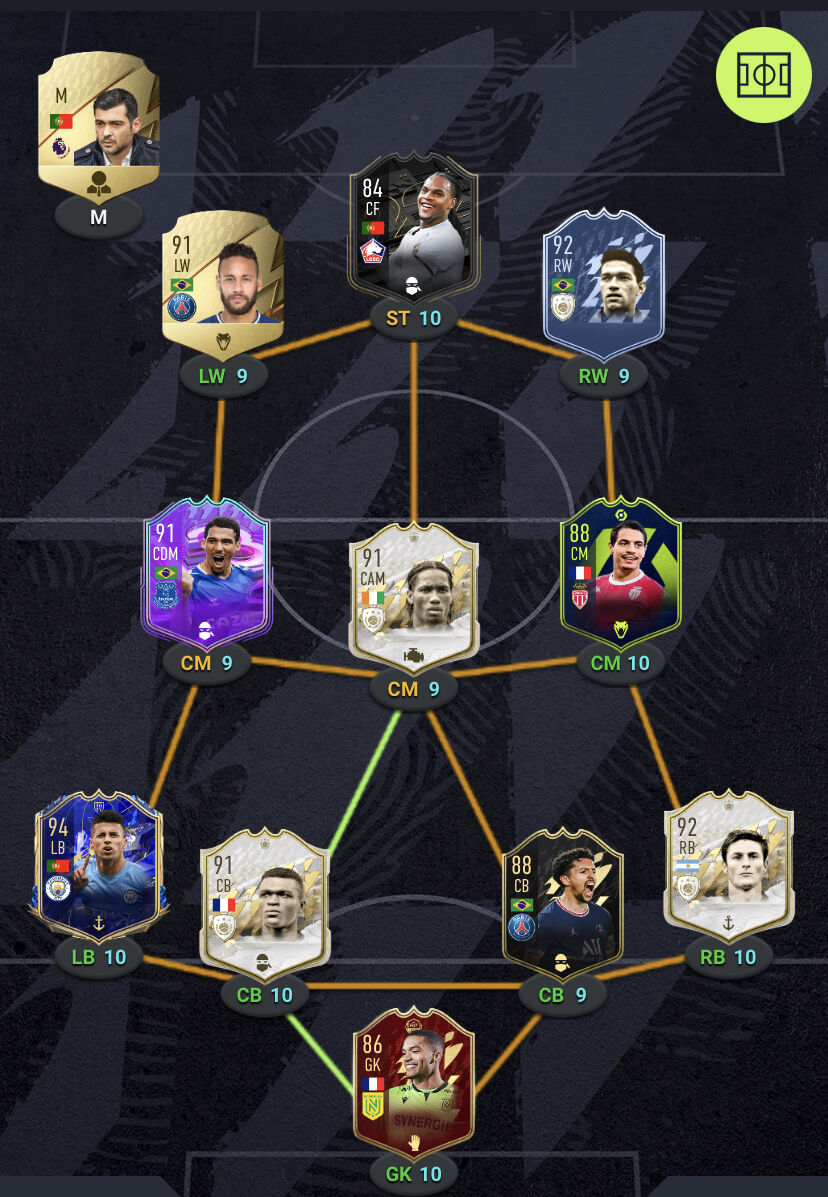 Mané sajnos csak egyet fejlődik... na mindegy, remélem azért mennek még egy-két kört, mert egyre jobban bírom ezt a lapot. Az upgrade után már Origi is egész jó elöl, ez az untrade liverpooli duó szerintem jó darabig maradni fog. Másik oldalon Grizi, De Paul, szintén jól működik.