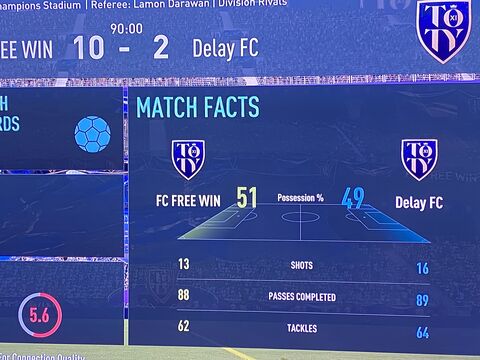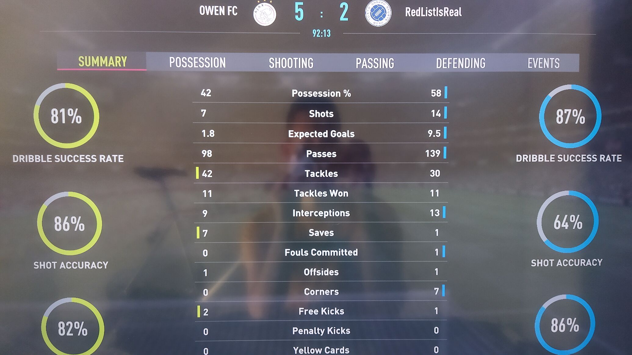 Utána lévő meccsen 1-0-ra vezetek, sok ziccerem van de a kapusát mozgatja az ellenfél, eléggé felbosszantott, hogy mennyi ziccert hagytam ki. Egyenlített aztán én léptem ki inkább döntetlennél.