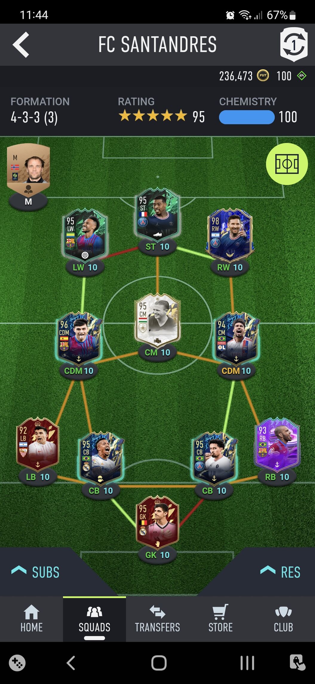 Persze ugyanazokat az eredményeket hozom, mint eddig, de legalább jobban élvezem a meccseket. Kezdésnél Cafú és Son 7-es, Pedri 8-as, mindenki más 10. Atal helyett jöhetne még egy bika CM, vagy mondjuk egy a Dybala/Cruyff/Dinho trióból, akkor Paqueta menne vissza CM-be. De összességében ez így kimondottan tetszik most