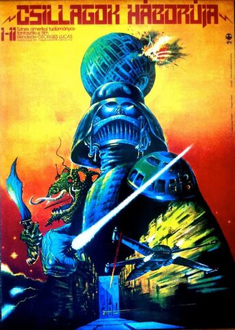 Nem, a hetvenes évek Magyarországán…A rothadó Nyugaton két éve már láthatták a filmet, amikor 1979 nyarán hozzánk is megérkezett, ekkor döntött úgy a kultúrpolitika, hogy a Mokép forgalomba hozhatja. Olyannyira kevés információ jutott el a filmről Magyarországra, hogy az első hazai moziplakátot Helényi Tibor szinte elmondás alapján tervezte, így került rá például sárkány és így lett egészen groteszk Darth Vader sisakja.