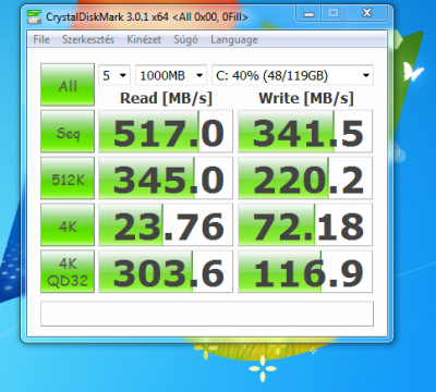 Na, megjött az új SSD-m. CrystalDiskMarkkal mérve vagy másfélszer gyorsabb ugyanabban a SATA3-as lapban, random adatokkal mérve (csak életszerűbb, mint a "fill0"