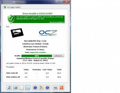 az lenne a kérdésem az ssd life pro mért nem írja ki mien az állapota csak azt írja hogy mennyit írt és mennyit ment