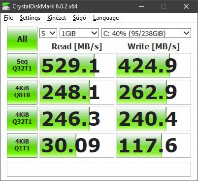 Ez egész kulturált. Egyébként a BX500-zal nem lenne baj sebesség terén, csak ha eléred vele azt a pontot, ahol betelik rajta a NAND cache, de ez csak nagy írásoknál jön elő, mikor sok gigát tolsz rá (vagy nagyon csurig van az SSD adattal). Normál, mindennapi írási felhasználási mennyiségeknél nem lassul be, mert ilyenkor az apró 4K random írások vannak többségben, és a szekvenciálisak is pár giga alatt maradnak, az olvasás pedig egyáltalán nem érintett. Ráadásul ez a 480 gigás egy nagyobbik modell, minél nagyobb modell, annál gyorsabb. Még a Crucial SSD Executive-ban a Momentum Cache-t is be lehet kapcsolni, hátha tovább gyorsít az SSD-n.