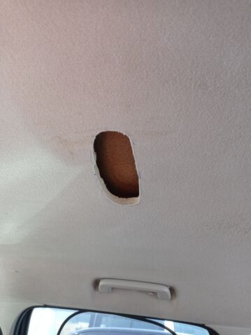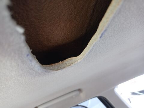 Hátsó üléssor fölé készül a lámpa. Mondjuk elbactam, de hát nem látok a kárpit mögé. Ha 2-5 cm-rel hátrébb vágtam volna ki nem lenne semmi baj, de most a B oszlop felőli részen vastagabb a kárpit, mint hátul. Kénytelen leszek kétkomponensű ragaccsal megtámogatni az elülső felét...