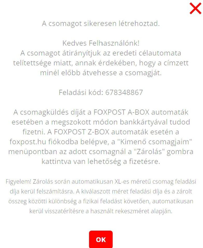 A kedvezményt jóváírtuk FOXPOST kupon egyenlegeden. Egy csomag küldésére használhatod fel automatából-automatába és a kupon kód mezőnél található "elérhető kuponjaim"-ra klikkelve éred el.