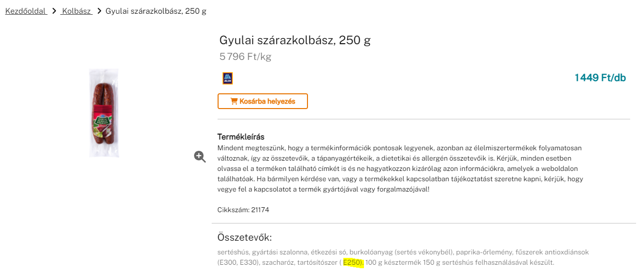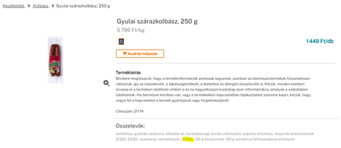 Én semmilyen "kész" húskészítményt nem szoktam venni boltba. Van a faluba fasza hentes, az nem rak bele csak sót meg fűszereket a kolbászba