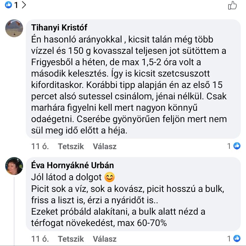 - Túl sok viz. Bár ahogy nézem a receptedben nem rosszak az arányok, de a liszt vízfelvevő képessége nem mindig ugyanolyan, így érdemes ellenőrizni, hogy nem túl sok-e a folyadék a tésztában, ha megcsíped és tapad a kezedhez a tészta, akkor sok.1/4 élesztő (12,5g) - kovászbarát még nincs, élesztőzők jelenleg