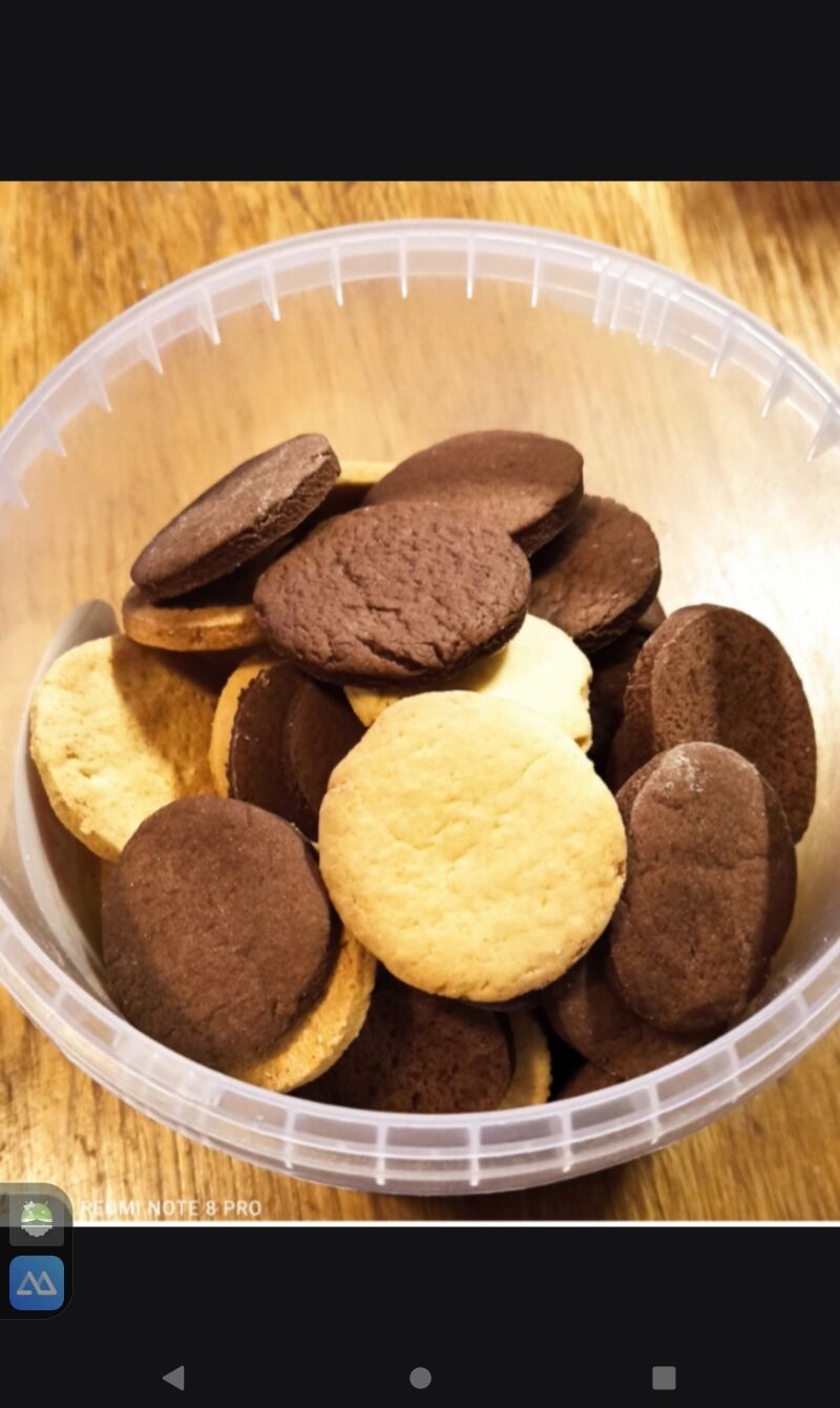 60 dk lisz kétfelé készítve, csokus, kókuszos. A végén azokat is szét szedve, lisztezve sikerült nagy nehezen ki szaggatni. Keksznek készültek és a végén omlósak lettek. Ott is a liszt C1 és a 82%-s vaj közre játszott. Látni lehetett zsiradékot amikor megnyíltak a tetejét. A tészta és korongok is ráncosak voltak. -