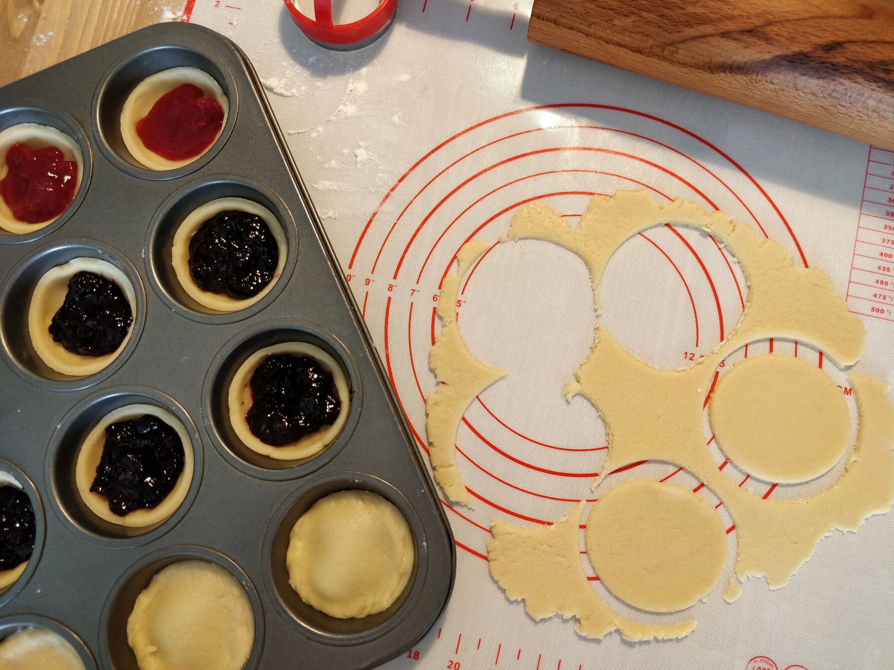 - 12 g sütőpor (1 csomag)A szobahőmérsékletű vajat elmorzsolom a liszttel, majd hozzáadom a többi hozzávalót. A tésztát csak addig szabad gyúrni, amíg összeáll, nem szabad "túlgyúrni". A hűtőbe tesszük minimum 1 órára, hogy a vaj ismét megdermedjen és dolgozni tudjunk vele, (egyébként, ez a tészta napokig eláll hűtőben, ha marad belőle érdemes eltenni).