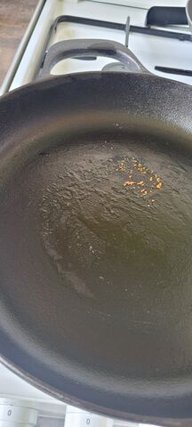 Sziasztok! IKEA Vardagen öntöttvas serpenyőt szeretnék kiégetni, van hozzá instrukció (olajos kikenés, 150°C 1 órán át, 3x). Namost nekem az első kör után az olaj összegyűlt ilyen barna ragacsos csomókká (kép). Vajon a folyamatot ronthattam el (gáztűzhely, raktam alá vasat), az olaj béna (nyilván a legolcsóbb olajat veszi feleségem, az is igaz hogy szinte alig fogy), vagy ez már a védőréteg?