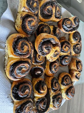 [kép] pl két sárgája miatt sajnáltam azt a két tojást… ill több liszt ment bele mert nekem így is ragacsos, kemény tészta lett. Klasszikus nálam az 50dkg liszt és 300-350ml tej/víz 50g vaj(vajas kifli), kalácsnál 75dkghoz 15dkg vaj(zsírosabb kelt tészta).Még egy pont a kakaós kalacs mellett, nem folyik ki, nem nyílik szét, könnyebb vele a munka, ha csiga akkor vajas leveles, de ugye az a hajtogatod miatt időigényesebb. Azért ez is elfogy, ebben az inflációs környezetben biztosan