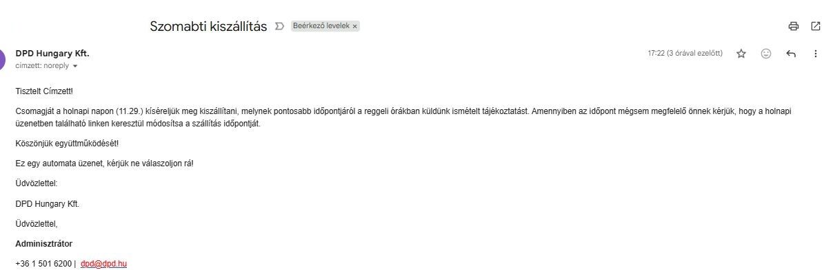Na ez az en DPD-s kalandom 2025-ben amikor mar torveny is van ra hogy a telefonos ugyfelszolgalatnak esszeru idon belul fol kell vennie a telefont. Ha tudnam ezt hol kell bejelenteni meg azt is megtennem, mostmar raerek