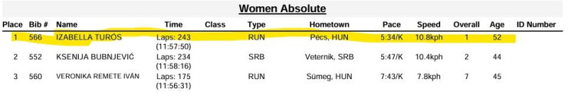 "Ultramaraton Palics. 12 H Hivatalos eredmény: 128,9 km