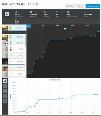 ).Mára nem volt különösebb terv csak valami laza 10-12K... de 14:00-kor kezdődött a Santa Con 8K futóversenyen a futópadon, amit nem lehetett kihagyni.