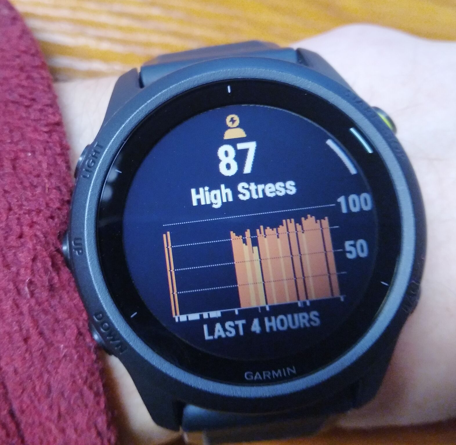 Ja, és milyen jó az új kütyü a csuklómon, nézegethetem rajta a stressz szintemet, ami szerinte reggel óta az egekben, és a pulzusom is 75-80 között van, pedig csak ücsörgök. Szóval ez a stressz mérés mégse csak hasraütésszerűen történik. -