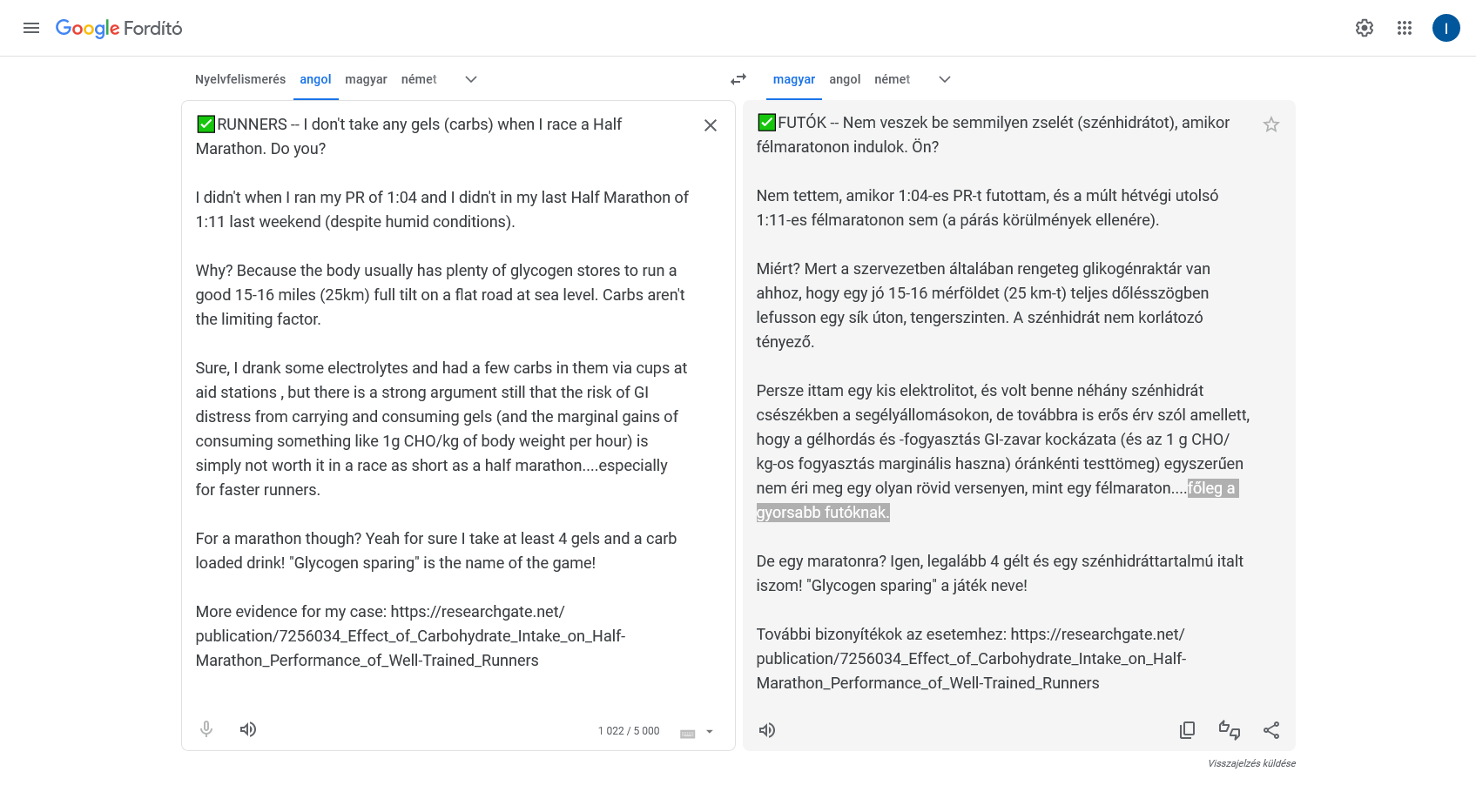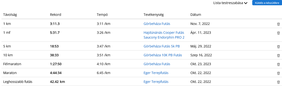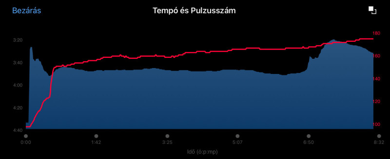 Szerinted lehet az, hogy az egészben futott tempók hiánya miatt nem volt esélyem PB-re? Amennyire régebben szerettem ezeket futni, annyira nem csináltam ilyen futást az elmúlt jó pár hónapban. Résztávok voltak, 200/400-ak, meg 1000-ek, néha 2000-ek, meg egyszer 3x4K most a verseny előtt, meg laza tempók, fokozók max. 4:30-4:20-ig, de ezek is csak 20-30 perc időtartamban. 4:10 körül nem nagyon mentem, és főleg nem ekkora távokat egyben.