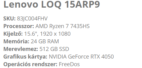 Barátnőm szeretett volna egy gamer laptopot, a Lenovo LOQ 15ARP9 lett.