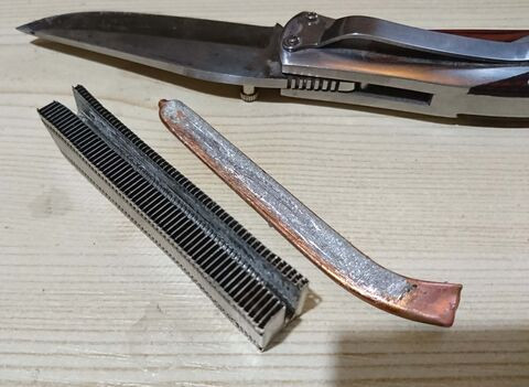Egy 100W -os forrasztópákával próbálkoztam kiolvasztani, végül feladtam és kifeszegettem a belét. Aztán gondoltam rátolom a hőcsőre, de máshová került mert nem volt elég hely pedig jó lett volna ha megfelezem. folyt.köv.