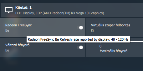 Nézd már meg kérlek hogy az AMD driver beallitasainal van Freesnync mint itt is ?