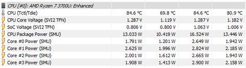 Valami azt súgja nekem, hogy ez a Ryzen 3750H nem annyira egy hűvös típus pedig 2 fizikai maggal kevesebb. Próbáltad esetleg picit megemelni a gépet akár 2 kupakkal vagy hűtőpaddal?