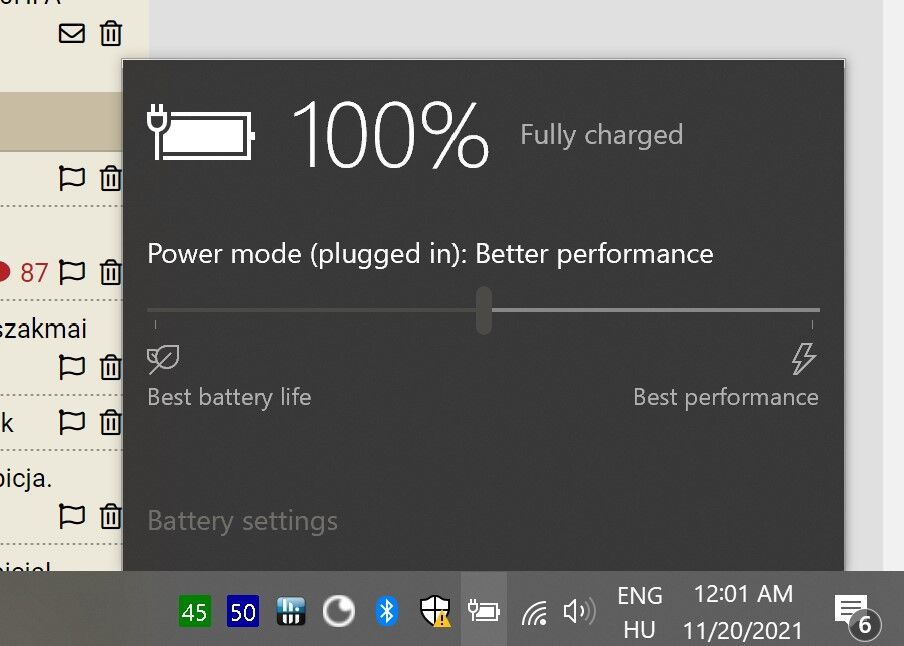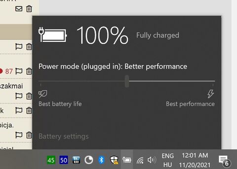 Az energia beallitasok alatt a proci max 99%-on van, ami annyit jelent, hogy nem megy a turbo akkus uzemmodban.