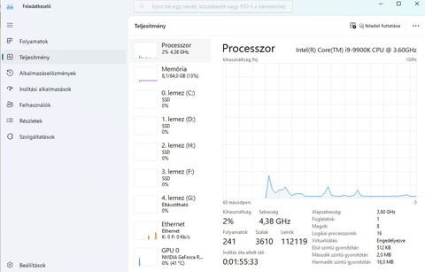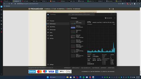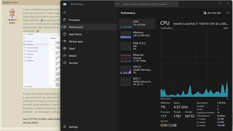 Spotify, Chrome, Opera, Edge, Steam, Vmware Workstation, Razer Synapse, Throttlestop.160-170 process - a W10-en futo 322 processz helyett. Pedig mennek a latogatott oldalak az Opera es Chrome alatt (Chrome masodik desktopon van, en igy valtogatok 3 ujjas sopressel).