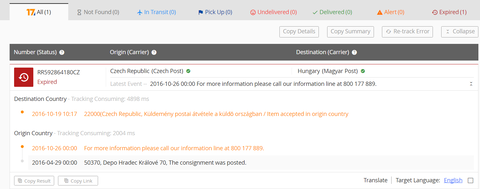 2016-10-27 00:00 22000, Praha 120, The consignment was returned to the sender.