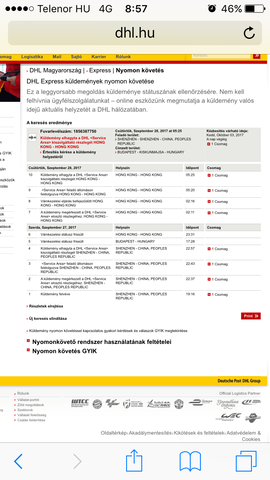 Másfél hetet futott. Az a tapasztalatom, hogy a tracking nélküli cuccok két héten belül ideérnek. Van 3-4 belga tracking-es rendelésem szeptember elejéről és még egyik sem ért ide.
