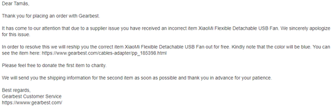 Írtak egy SKU számot ami stimmel, de a leírásban a kínai jelek fehér átlátszót írtak és meg multicolor ledfüzért rendeltem. Írták, hogy raktáron van és azonnal szállítják.