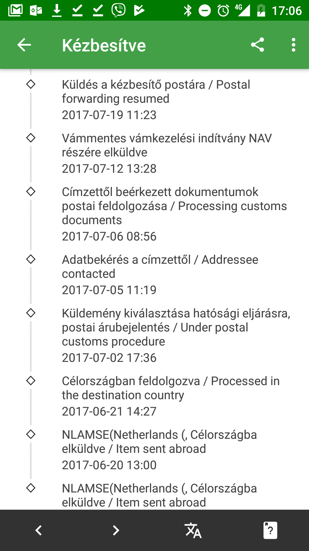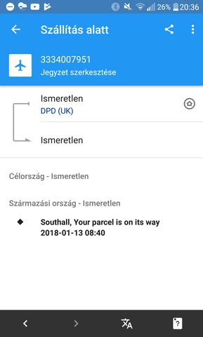 2018-01-14 15:58:00 Parcel arrived at the airport.Valaki jár ebben a cipőben? 14. óta semmi mozgás.. :S