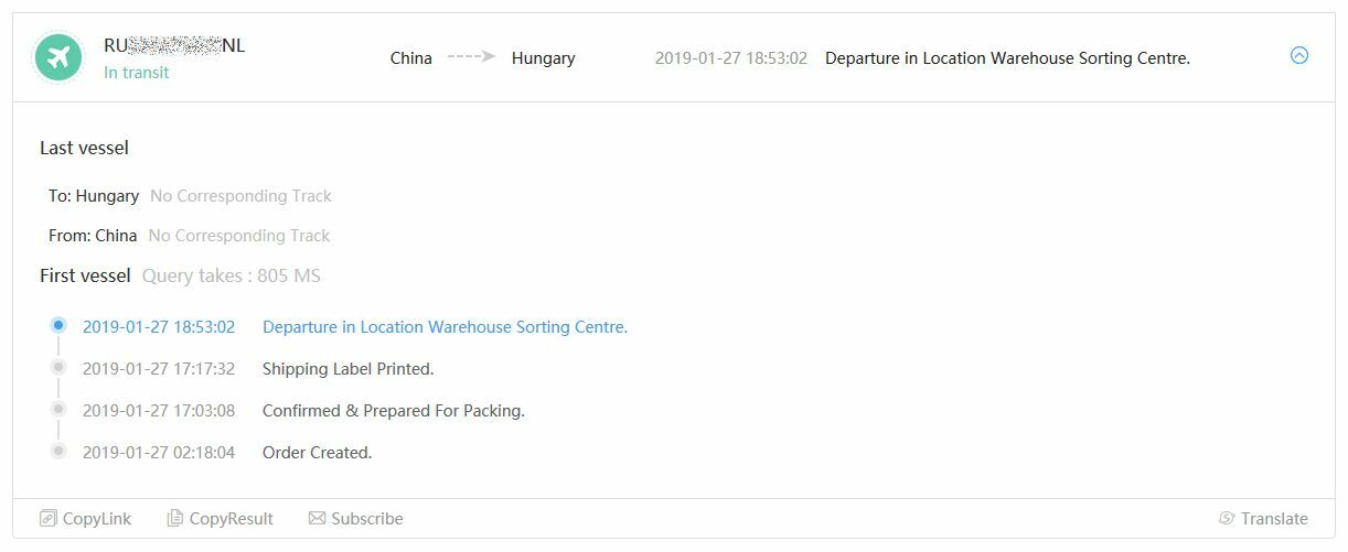 A csomagok már Kínában elkészülnek, és a fuvarlevelet is akkor állítják ki (ezért jelenik meg a követési szám is már akkor).