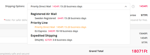 Sweden Post Registered-t választottam, 15-28 üzleti napról szólna.