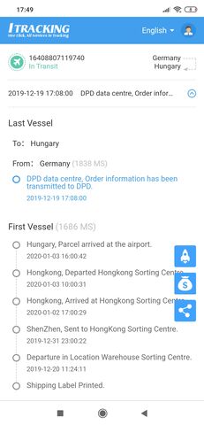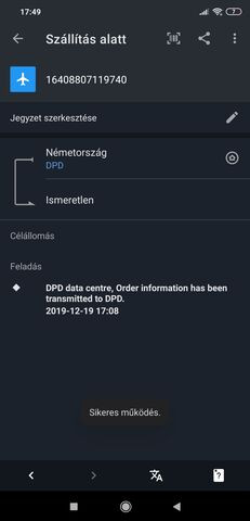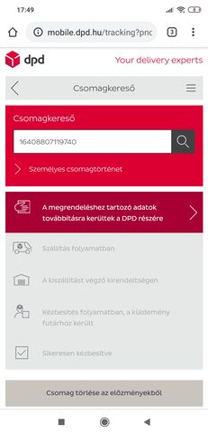 Én nem vennék rá mérget, hogy az a nyomkövető oldal helyes adatokat mutat. Aszerint 17-én megérkezett Mo.-ra a csomagom. Már 25-e van, de a DPD rendszerében még mindig csak annyi van a csomagomról, hogy "06.01.2020 04:51, DPD adatközpont, A megrendelési adatok továbbitva a DPD felé." Azaz 8 nap elteltével még mindig nem jutott el Mo.-ról a DPD kezébe a csomag?! Fura...