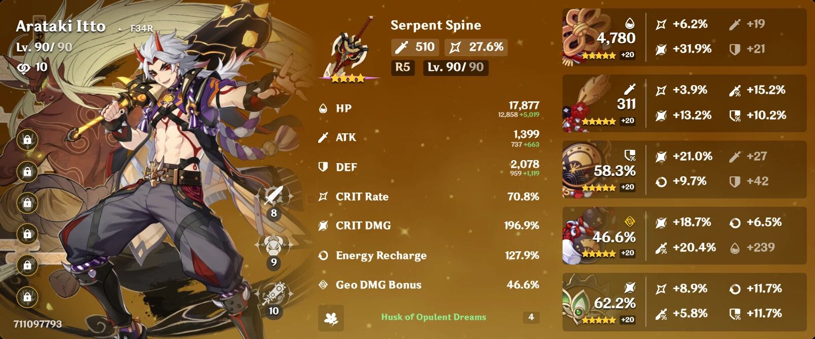 Én mindig a limiten táncolok, legfőbb ok a FOMO, hogy mihoyo bármikor behozhat olyan karaktereket akiknek a skálázódása egyedi és más stat kombók/szettek jók nekik. Minden szetthez megtartok különböző fő statos jobb artifacteket, substatek-nél ilyenkor az EM, ER%, Crit/Critdmg/stat% a fő szempont, tehát konkrétan csak akkor kukázok ha ezeknek a kombója nagyon szarul épül fel szett specifikus szemlélettel, vagy túl sok a flat stat.