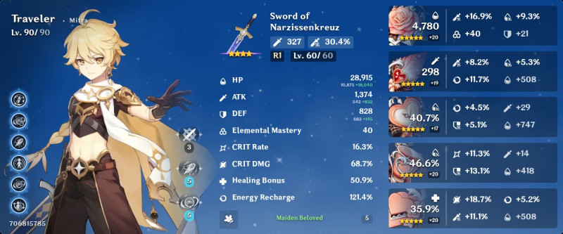 Nálam 77 qiqi c0, 70 arle c0, 64 Lyney bow, 63 kasza.