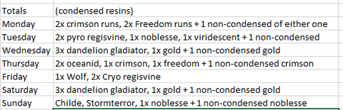 Én már annak is örülnék ha a condensed resin nem lenne limitálva, mert legalább ha nincs időm játszani átvihetném másik napra.Bár hozzáteszem nekem semmi ehhez hasonló farmolási táblázatom nincsen, én nem veszem ennyire komolyan.