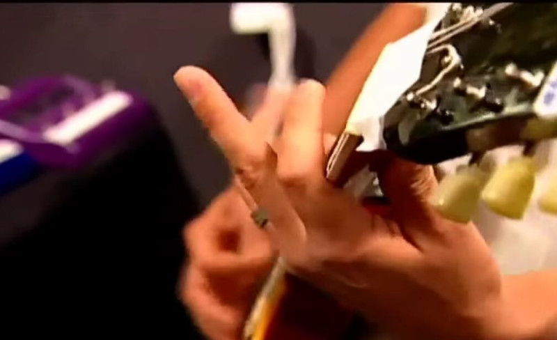 Aztán ott vannak az olyan témák, mint pl. a Dimmu Borgir - Entrance kezdőriffje, ahol nem a kvintet lefogni nehéz, hanem a jobb kézzel rendesen kipengetni a dalt. A metál teli van ilyen zenékkel, ahol nem a lefogó kézzel szenved az ember, hanem a pengetéssel, és akár 10 -15 évnyi állandó, napi gyakorlásba is beletelhet, míg jól el tudja játszani. -