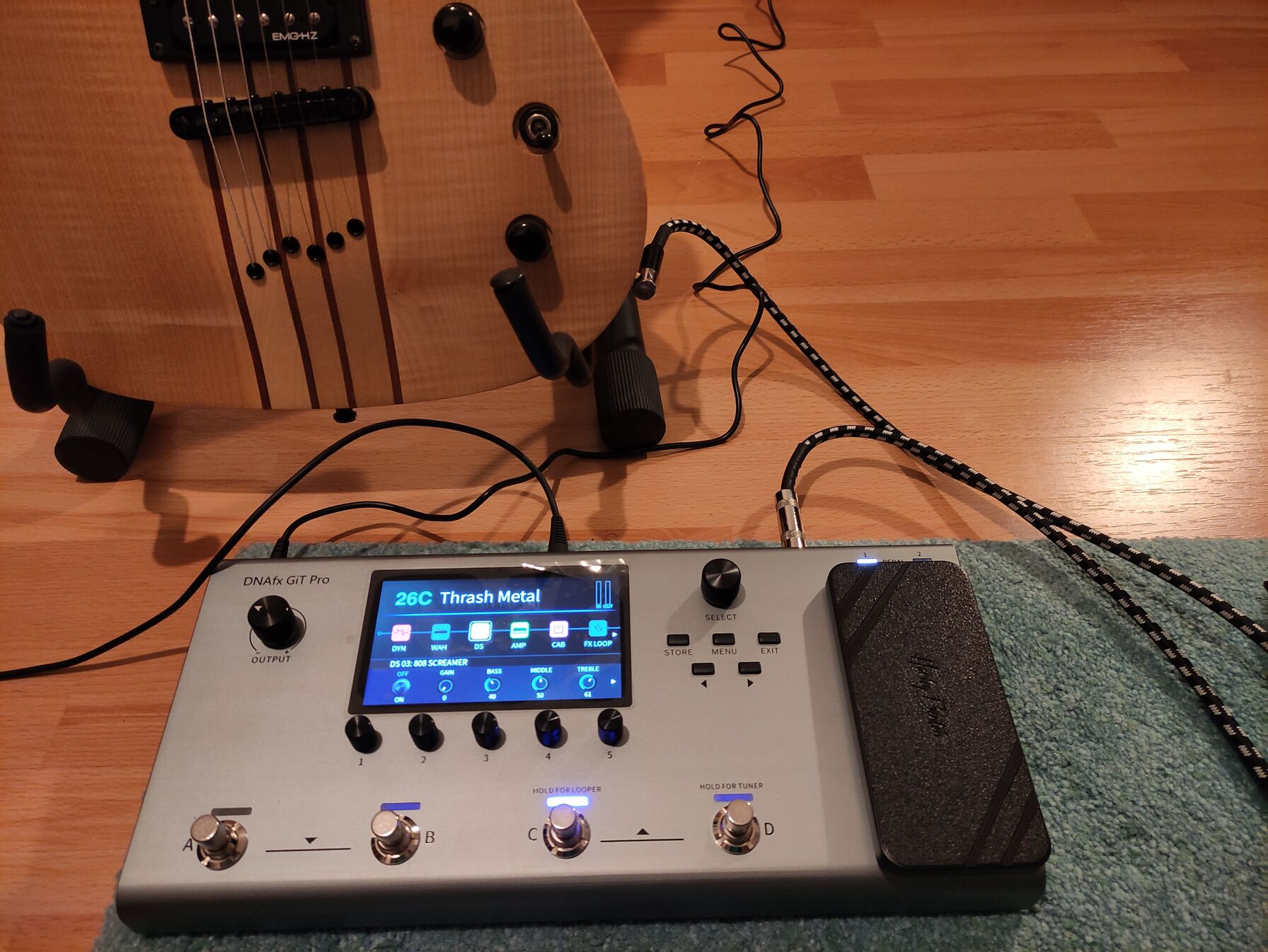 Megtekergettem ma a DNAfx GiT Pro-t. Eddig nagyon tetszik, sokkal használhatóbb hangokat lehet belőle kihozni, mint a Zoomból. Egyébként semmi varázslat nincs benne, van egy fix lánc: dinamika-wah-drive-amp-cab-fxloop-zajzár-eq-mod-reverb-delay, aztán ezeket lehet paraméterezgetni és ki-be kapcsolgatni presetenként (a sorrendben nem vagyok biztos). Szóval ebből a szempontból még a Zoomnál is butább, de nekem jó ez így, legalább nem rontom el a sorrendet.