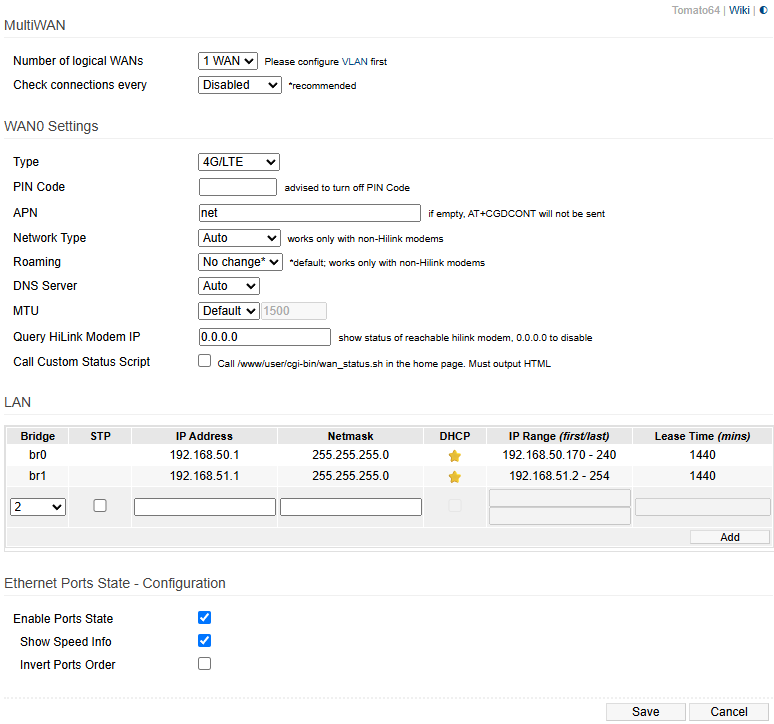 Pár évvel ezelőtt sikerült USB-n keresztül csatlakoztatnom a telefonomat, hogy kipróbáljam a Tomato64 funkcióját. Voltak furcsaságok a telefonnal, hogy működjön, de ugyanez igaz volt a FreshTomato-ra is. Én magam még nem használtam 3g/4g/5g modemet. Azt hiszem, mindennek a helyén kellene lennie, de nem tudok senkiről, aki eddig megpróbálta volna használni ezt a funkciót. Van olyan eszközöd, amin működik a FreshTomato, vagy megpróbálhatnád megnézni, hogy ott működik-e?