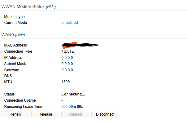 Beleraktam a routerbe egy Huawei E3372 LTE USB modemet, domino SIM kártyával.