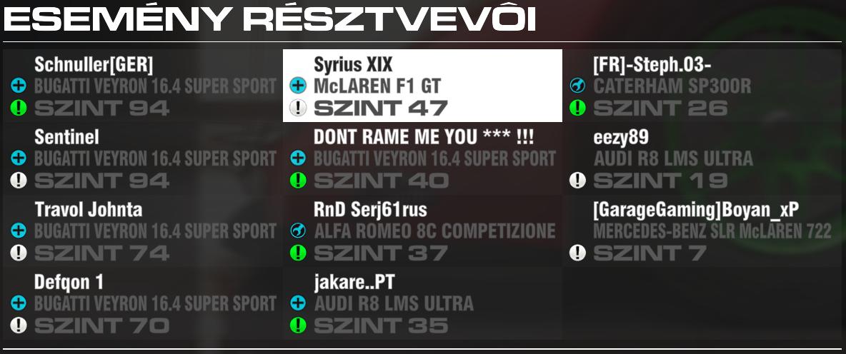 [link] ez már mindennek a teteje! Arról nem is számítva ,ha a karriert csinálom ott sem tünteti fel a nevem.....,úgy emlékszem minden futam után a Barátlistás időket láttam magam előtt és én is ott voltam,de most ott sem vagyok ott