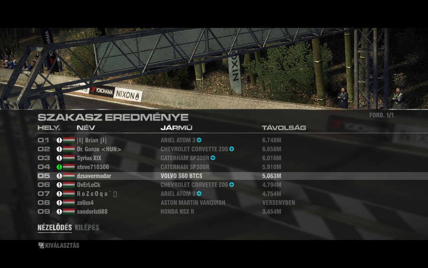 + állok és várom vége legyen a versenynek...mozdulni nem tudok...esc semmi nem működik...csak hallom a körülöttem elmenő kocsikat...és egyszer csak elkezd fel-le menni a km/h