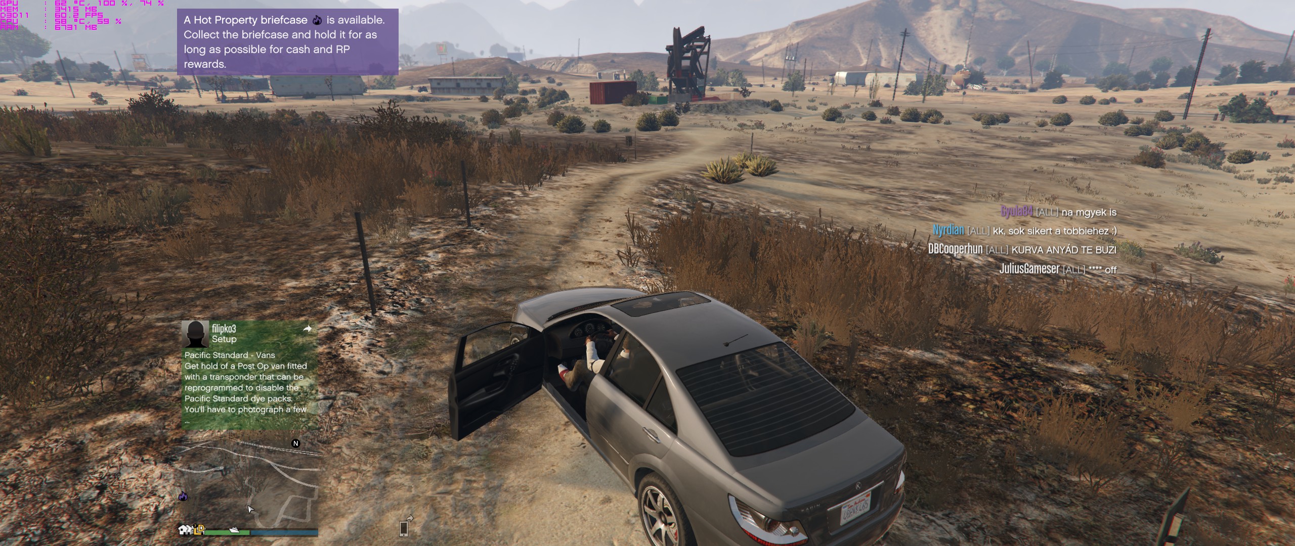 Indítok job-ot, erre a társaim keresztbe tesznek, vagy éppen nem azt csinálják amit kell, vagy megvárják amíg én elintézem addig spectatorban tátják a szájukat.Sikerült megvennem végre a Kurumát, pénzem nem maradt semmi. Gondoltam jön az éjszaka, irány Sentinel Coupet lopni, abból lesz 15-17ezer dollár.