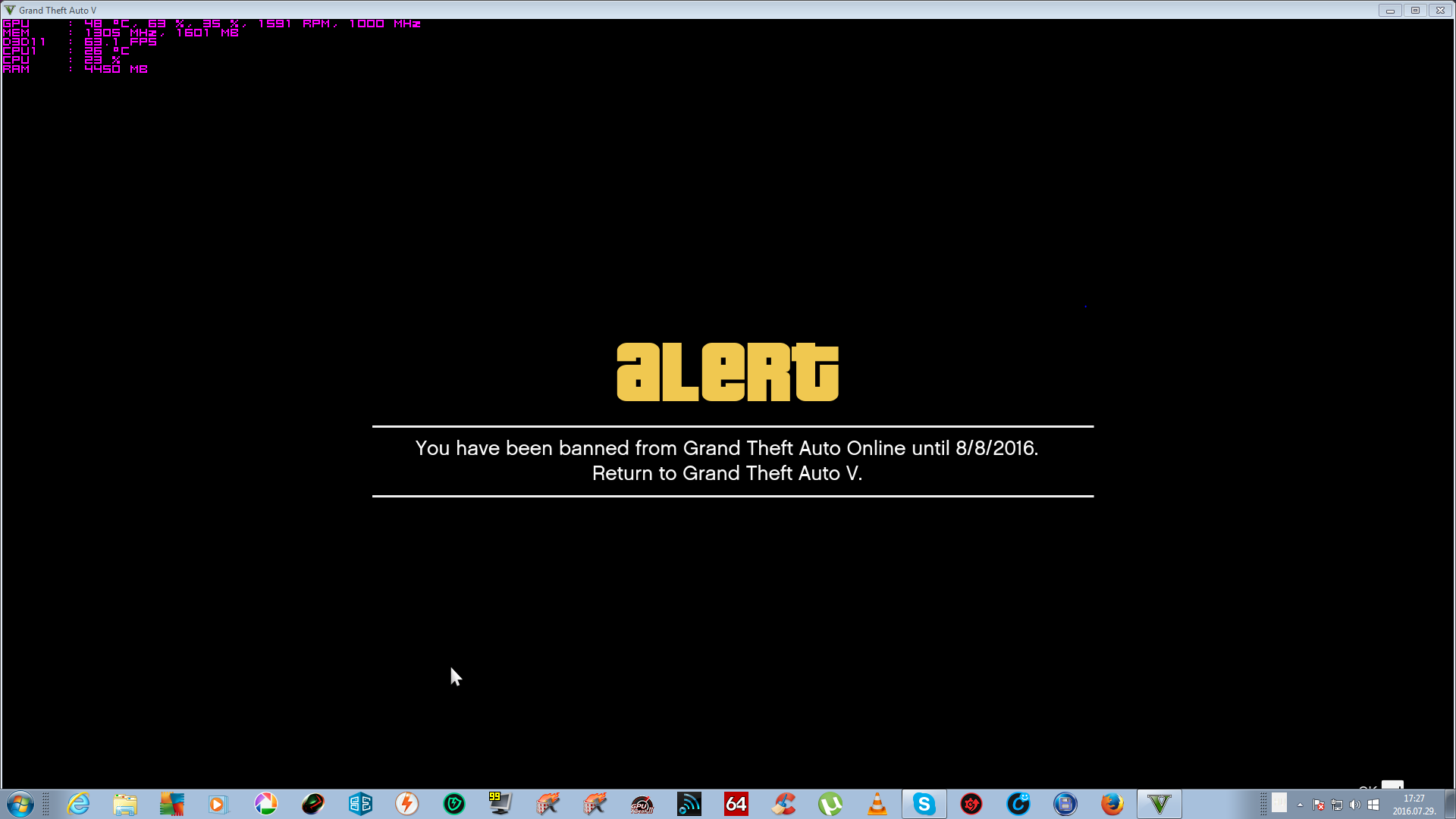 Raadasul ha leteszem ablakba akkor elsore kidobja hogy GTA5.exe leall, de ha nem okezom csak bezarom a kis hibaablakot akkor fut tovabb a game