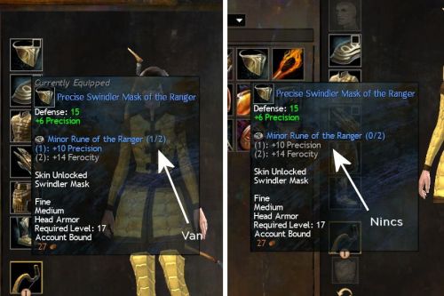 Van egy adott runa, esetedbe a Minor Rune of the Ranger. Ebből ha több darabot több ruhádba beleraksz, akkor több bónuszt fog adni (ahány darab van rajtad az annyi számmal jelöltet meg kisebbeket).